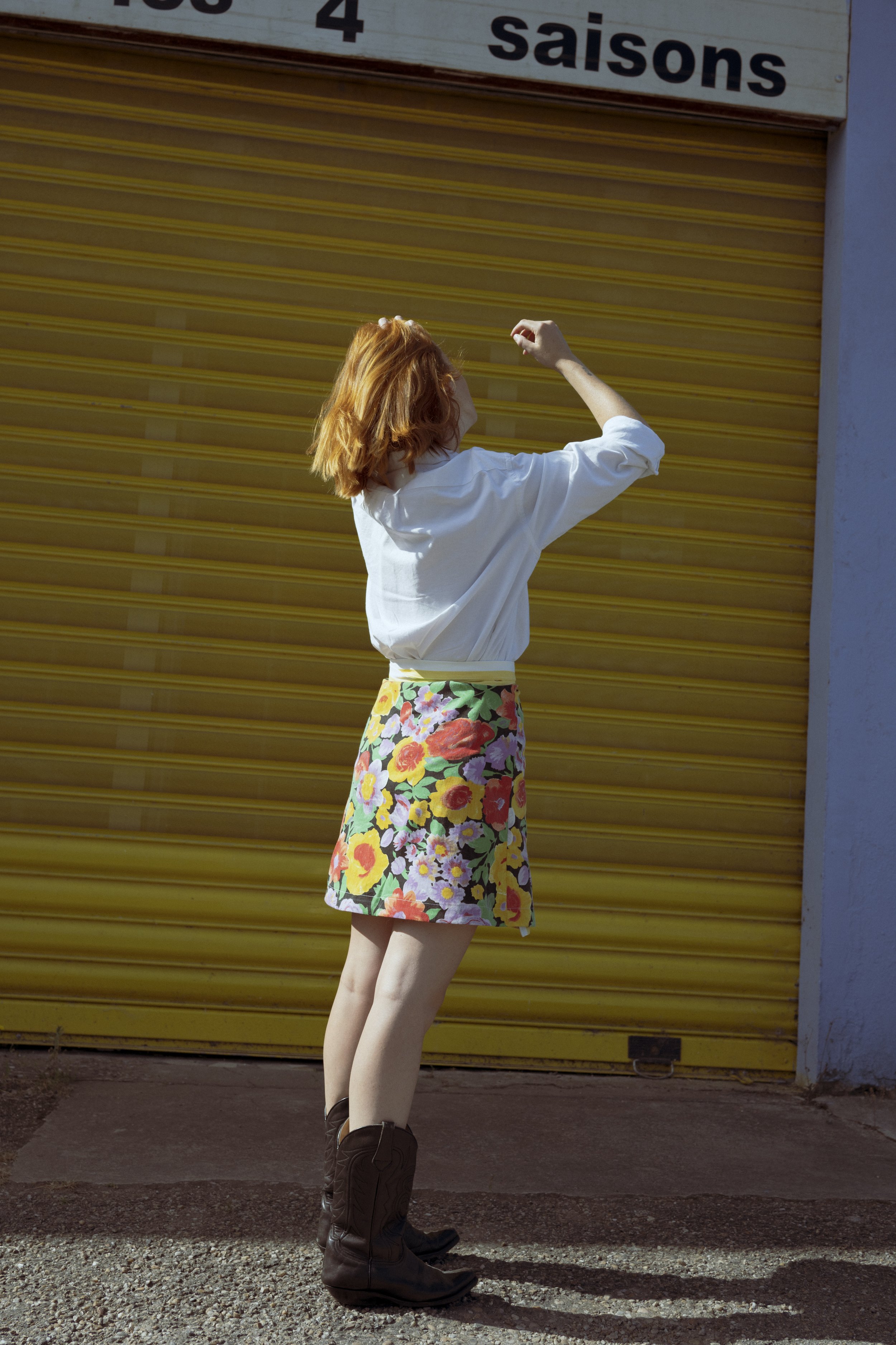 TOUT COMMENCE PAR UN PLACARD QUI S’OUVRE SUR DES PILES DE TISSUS OUBLIÉS. EN QUELQUES HEURES, LA TAIE DE TRAVERSIN DEVIENT JUPE ET LES NAPPES DEVIENNENT ROBES. L'IDÉE EST D’UTILISER L’EXISTANT POUR FAIRE DIALOGUER LES MOTIFS ET LES COULEURS. FAIRE DU BEAU AVEC DE L’ANCIEN, VOICI L’ENGAGEMENT DE CLARA, LA CRÉATRICE DE SALUT GINETTE.